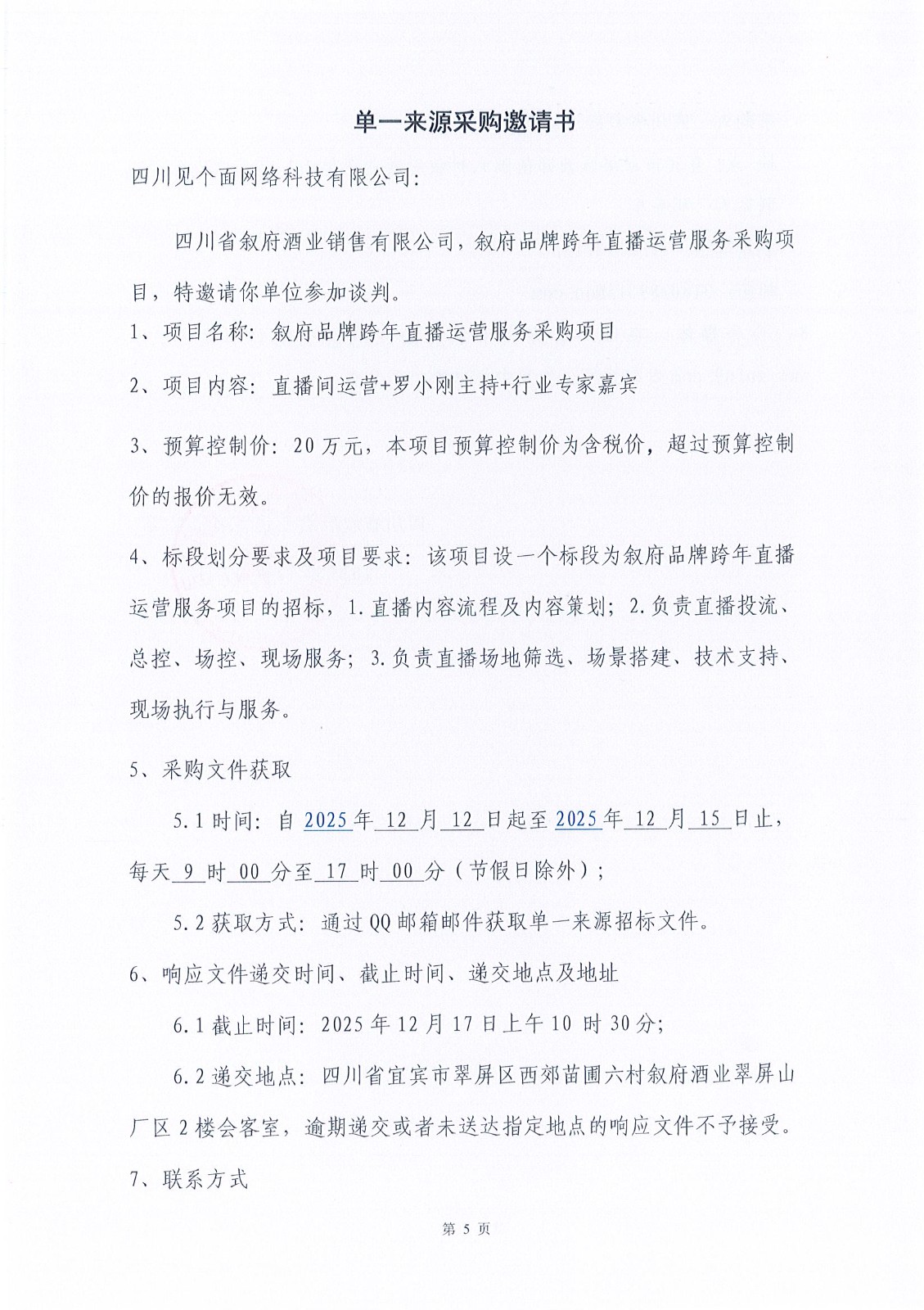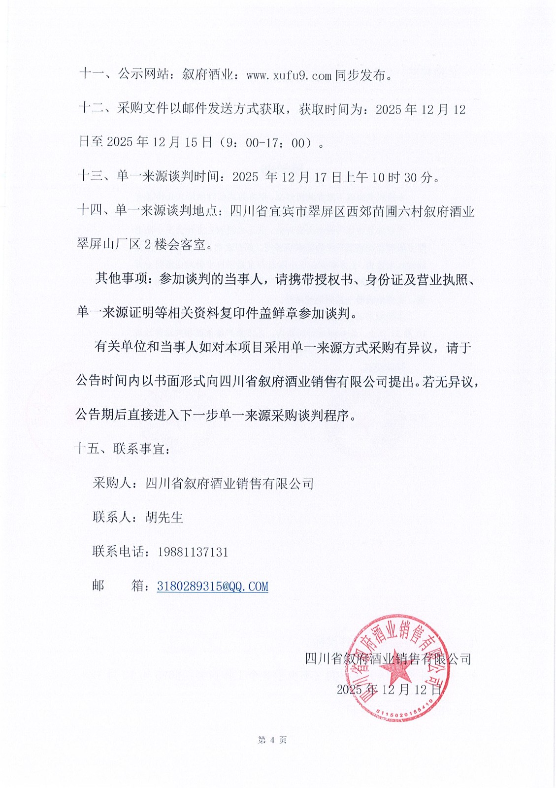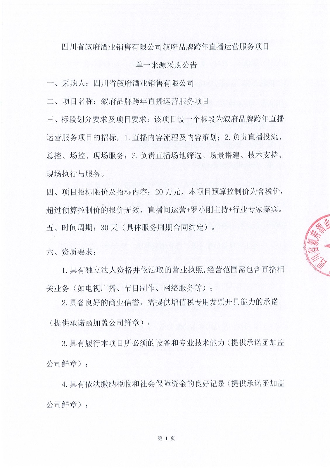 (第二次)四川省宜賓市敘府酒業(yè)股份有限公司李莊基地外接電競(jìng)爭(zhēng)談判采購(gòu)項(xiàng)目比選招標(biāo)公告