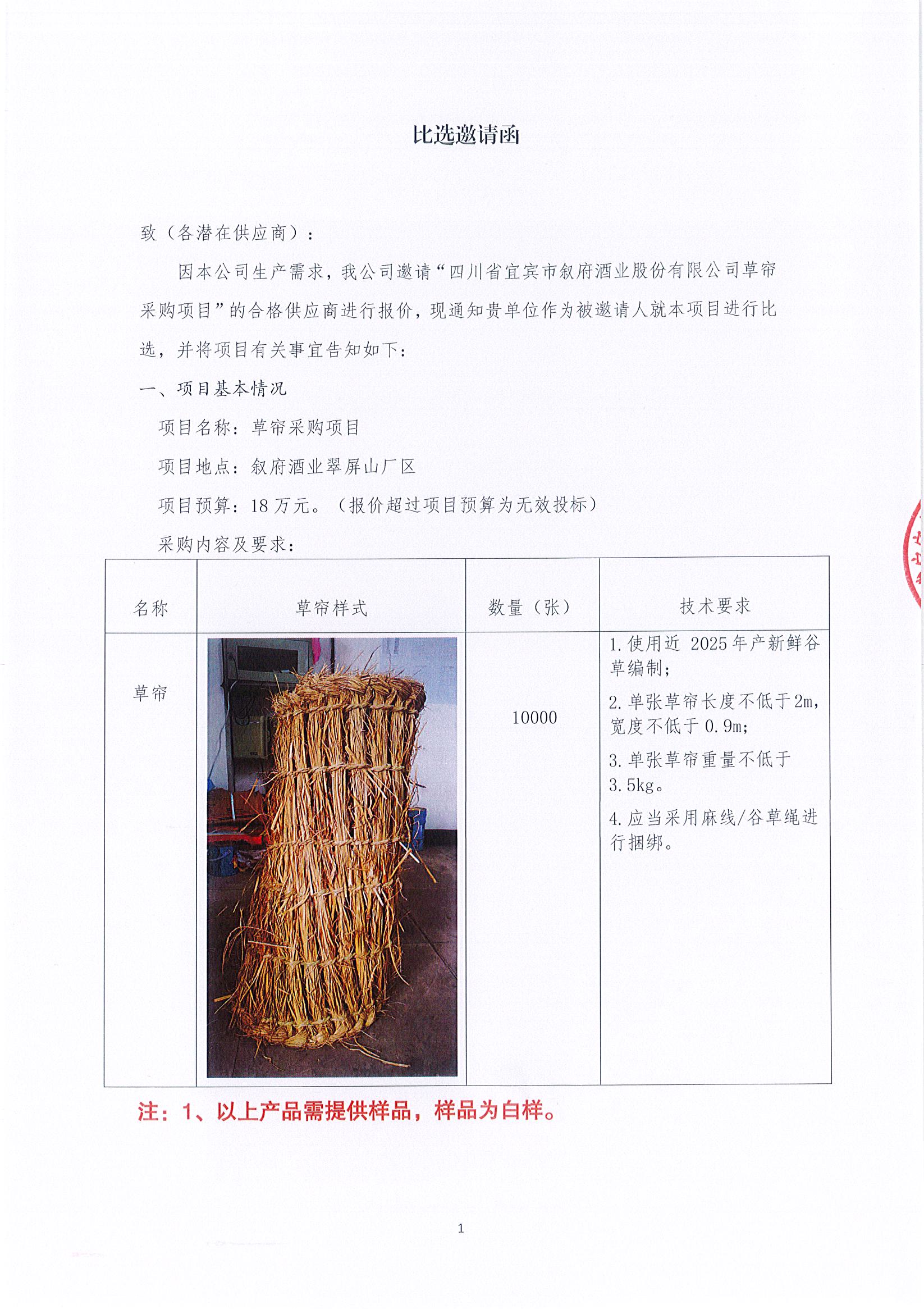 第二次四川省宜賓市敘府酒業(yè)股份有限公司熱季檢修李莊自動化量水設(shè)備制安采購項目