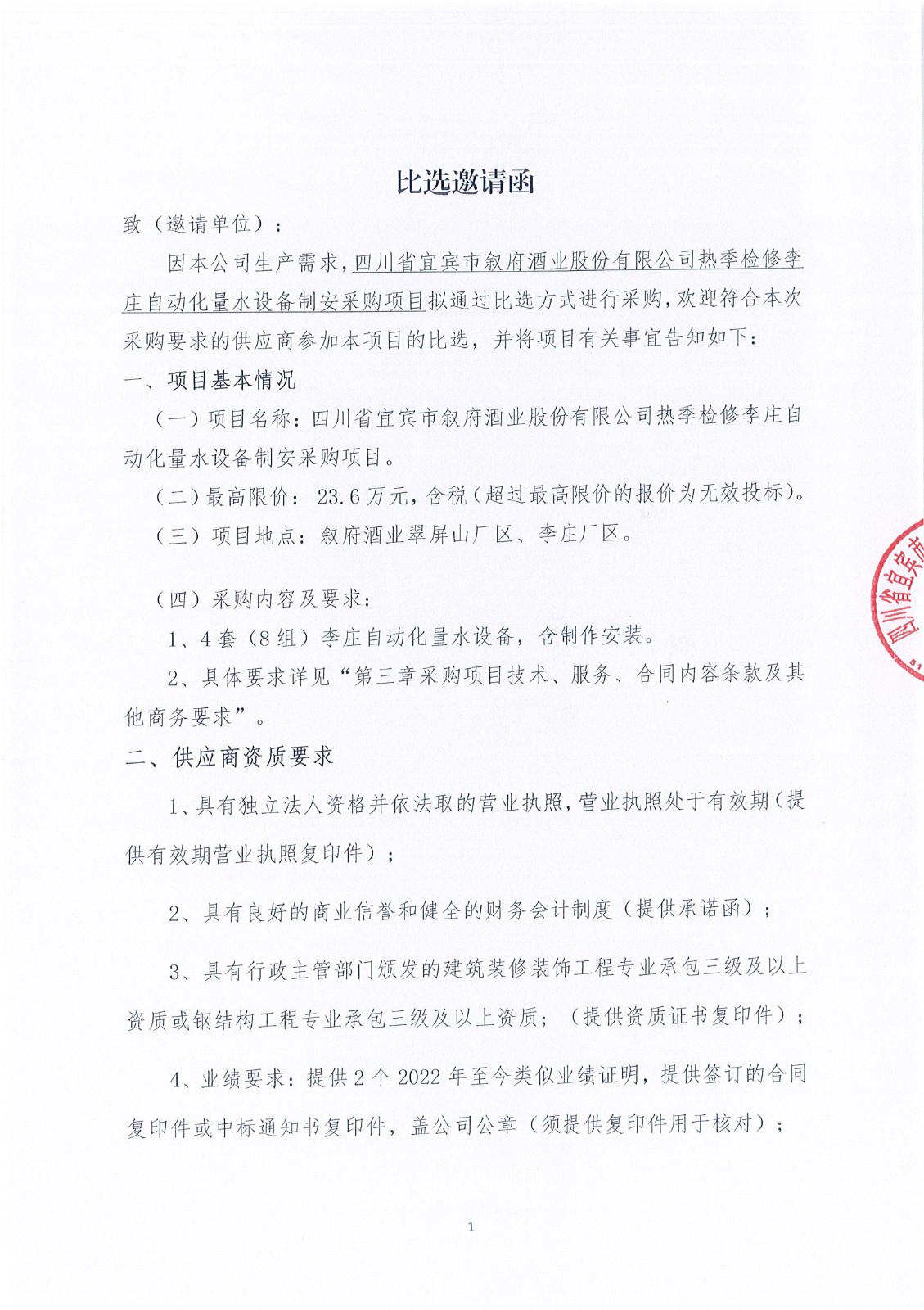 四川省宜賓市敘府酒業(yè)股份有限公司2025年熱季檢修項(xiàng)目流標(biāo)公告
