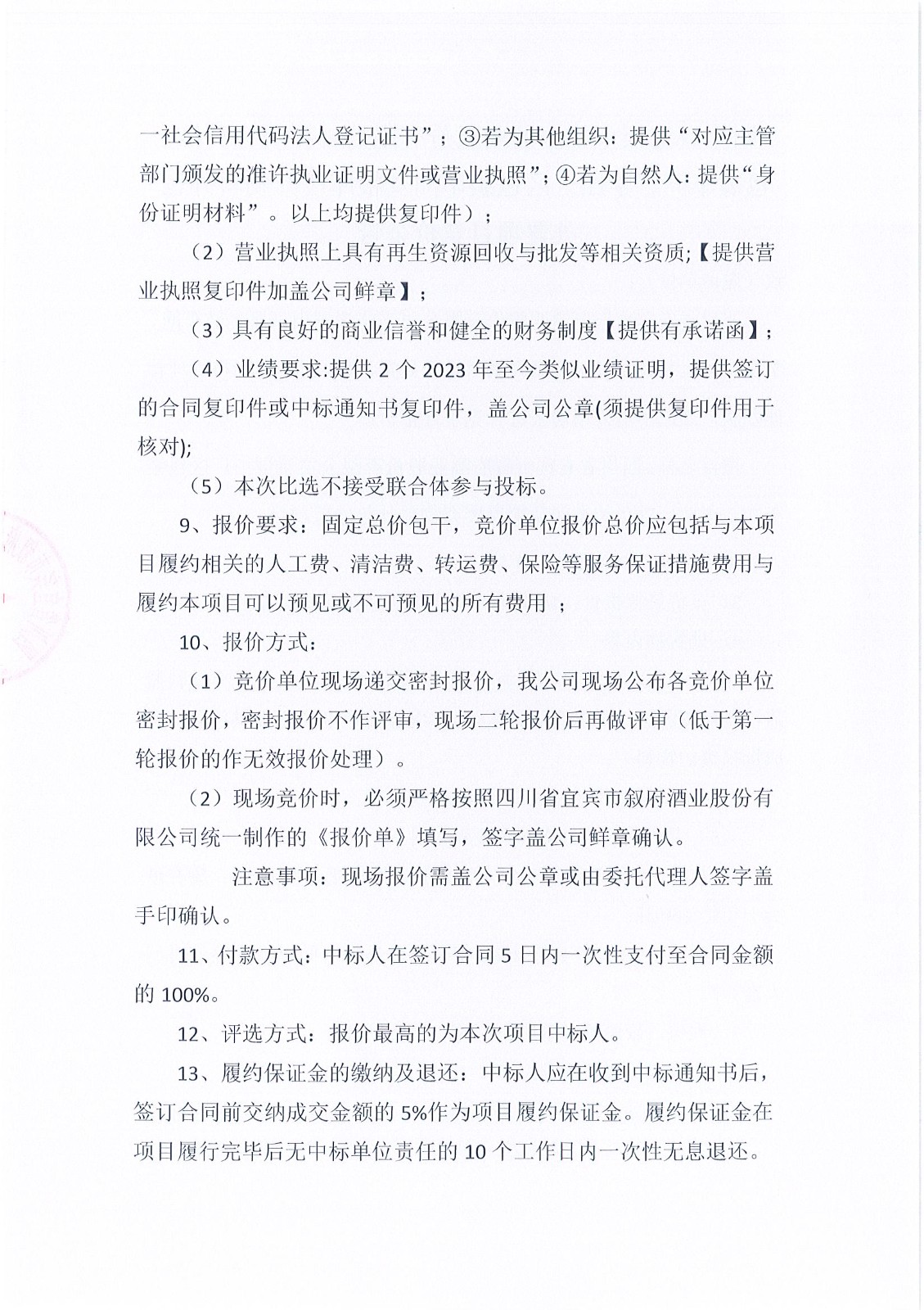 第二次四川省宜賓市敘府酒業(yè)股份有限公司熱季檢修李莊自動化量水設備制安采購項目