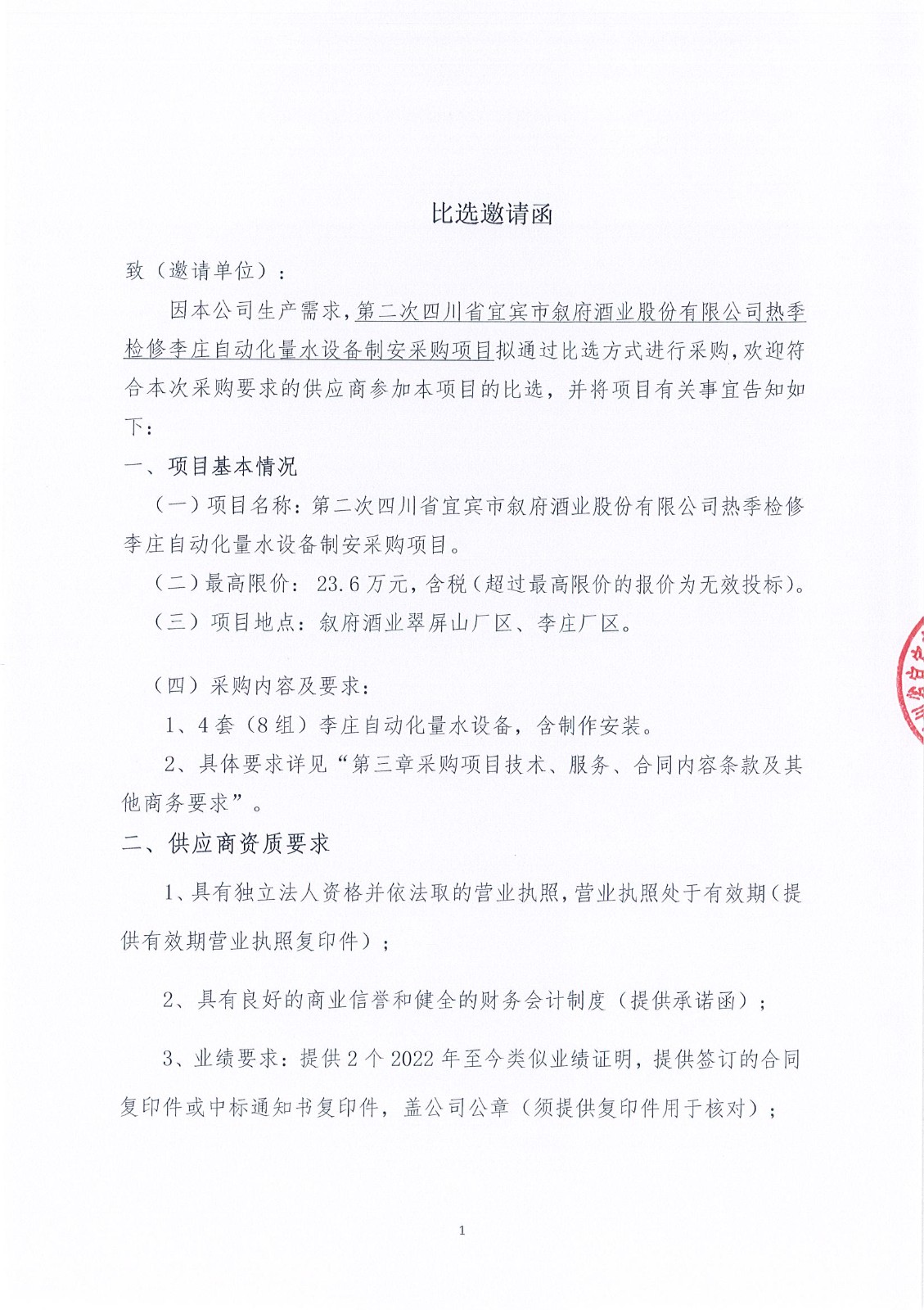 四川省宜賓市敘府酒業(yè)股份有限公司翠屏山廠區(qū)包裝車間、李莊廠區(qū)包裝車間及糧庫廢棄物料外包處置項(xiàng)目