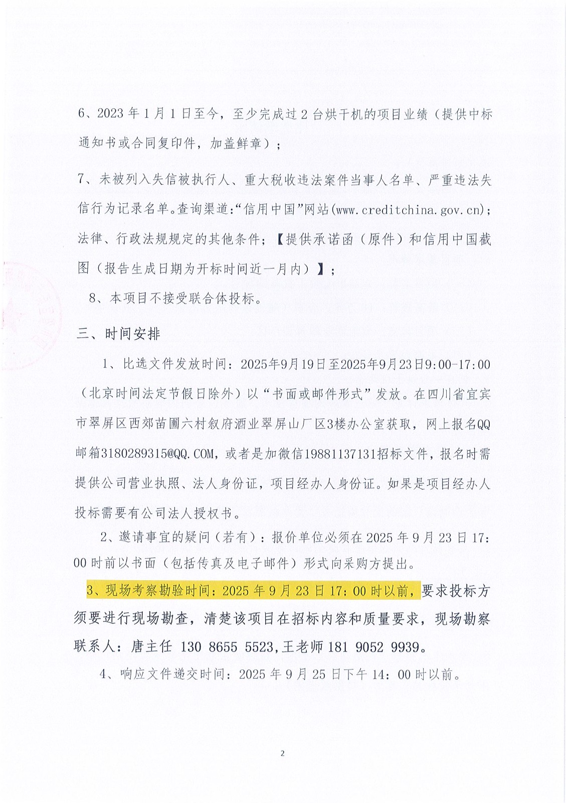 四川省宜賓市敘府酒業(yè)股份有限公司包裝中心烘干機(jī)采購(gòu)項(xiàng)目流標(biāo)公示公告
